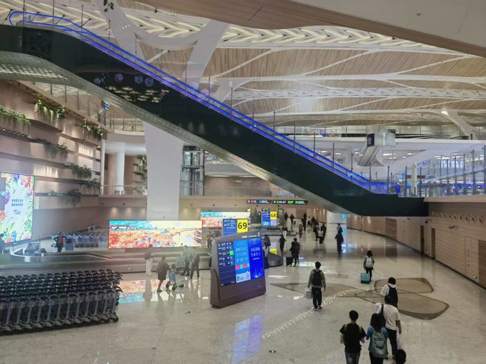 时隔24年,广州如今再度拥抱“十五运”,由于赛事分散于广东、香港和澳门三地,笔者和同事们也第一次在全运会报道分头出击:有人专门驻扎中国香港、中国澳门,有人定点报道深圳区域赛事,笔者和同事姚勤毅则将落地广州,覆盖广东省内赛事。面对广州这个如此熟悉的出差目的地,笔者总感觉可以轻松拿捏。于是,啥都没想就订了一张机票:上海虹桥飞广州白云机场,还能出啥幺蛾子?等飞机一落地乃至走进航站楼,笔者就感觉到了异样——这座来了不下30次的机场,怎么彻底变了模样,变得这么充满艺术感、科技感和自然感?
